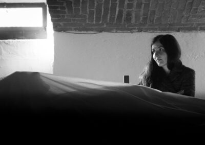Con un colpo alla festa, un lavoro teatrale sull’assenza, la perdita e la violenza della logica performativa. Il desiderio è quello di muoversi in un campo meticcio tra performativo e non performativo, non creando tanto uno spettacolo, quanto un ambiente in cui si sta svolgendo un evento, in questo caso una veglia funebre.