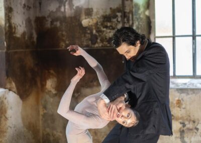Un’immersione profonda nel mondo interiore dell’interprete, esplorando il delicato istante tra la fine di una performance, il ritorno dei danzatori sul palco e l’incontro con il pubblico.