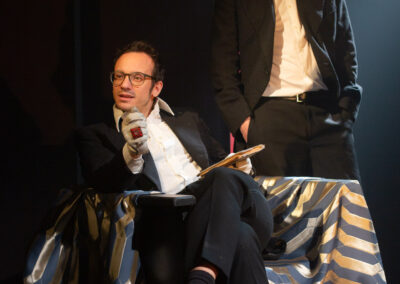In questa messa in scena, una discesa agli inferi sempre più profonda, mascherata dalle buone maniere, dominano la scena tre misteriosi custodi, le cui vite sono indissolubilmente legate a quel ritratto. Una triade allegorica che nasce dalla scissione della greca configurazione di kalòs e agathòs, bello e buono/giusto. L’elemento del buono è rappresentato da Basil, il pittore esteta; Dorian/Narciso, giovane orfano, è il bello sino a trans-gredire nel territorio opposto, sempre all’insegna dell’eccesso: l’orrido, il malsano. Terzo componente è Lord Henry Wotton, il voyeur, l’occhio che guarda impartecipe, l’influencer. Figure che espongono l’impossibile polarizzazione di quelle categorie la cui netta separazione è funzionale al mantenimento dell’ordine sociale: maschio/femmina, bene/male, ragione/istinto, emotivo/cognitivo.