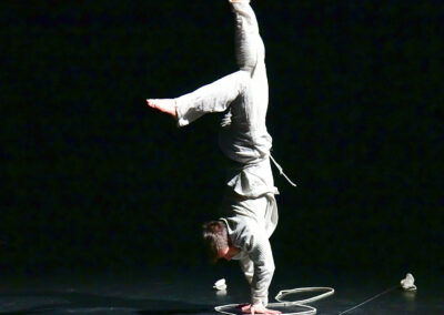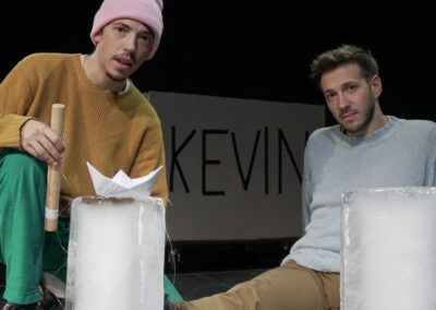 KEVIN è circo contemporaneo, danza e musica KEVIN ha a che fare con delle scarpe di ghiaccio da 6 kg l’una.