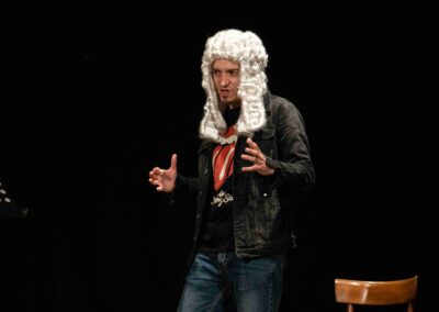 Una cavalcata entusiasmante dentro le vicissitudini della vita di Jean-Baptiste Poquelin, ovvero Moliére. Il rapporto con i genitori, la scoperta del teatro, i suoi amori, i suoi successi e i suoi dispiaceri. Immergersi nella vita di uno dei più grandi autori e attori di tutti i tempi diventa un’occasione per riflettere sul presente: la condizione dell’artista oggi e della società, guardando tutto con sarcasmo, ironia e un certo distacco.