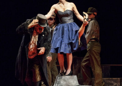‘Dramma satirico di respiro civile’ scritto da Brecht durante l’ascesa al potere di Adolf Hitler: la discriminazione razziale come pretesto per allontanare lo sguardo dai problemi economici dello Stato e chi non possiede la testa “giusta” viene isolato. Una delle opere meno conosciute dell’autore tedesco, una metafora visionaria che prosegue attraversando la storia con straordinaria attualità. La scena di un circo, o di un processo, il pubblico disposto ai lati è costretto a prendere posizione. Una contaminazione di stili recitativi che partono dalla commedia dell’arte fino ad arrivare a tagli più grotteschi.