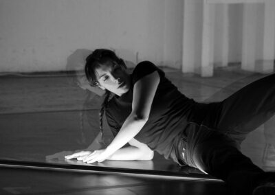 Una riflessione performativa sul rapporto tra assenza e presenza. In uno spazio sospeso e indefinito, un corpo in movimento si abbandona alla contemplazione di istanti, intrecciando gesti e traiettorie con l’ambiente circostante. Si apre la strada a un’indagine sui confini tra interno ed esterno, tra visibile e invisibile.
